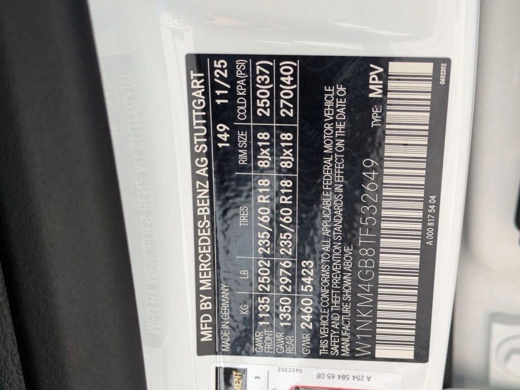 Mb Navigation,Surround View System,Navigation System,Ventilated Front Seats,Wheel Locking Bolts,Keyless Start,Rear Spoiler,Cooled Front Seat(S),Black Fabric Headliner,Macchiato Beige; Mb-Tex Upholstery,Natural Grain Walnut Wood Trim,Piano Black Lacquer Center Console,Polar White,Wheels: 18" 10-Spoke