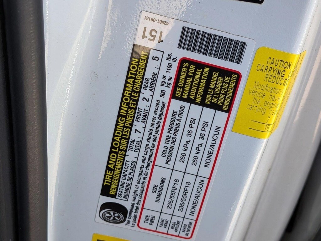 • Front tires: 235/55TR18.0
