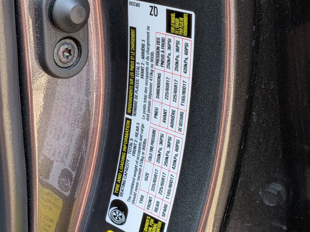 • Rear tires: 225/65HR17.0