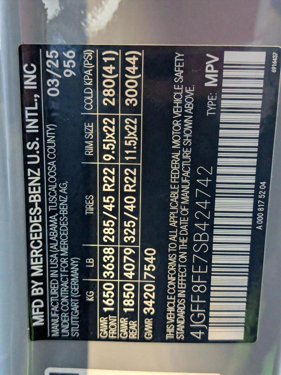 Pinnacle Trim,Manufaktur Alpine Grey,Acoustic Comfort Package,Warmth & Comfort Package,Roof Spoiler,Panoramic Roof,Trailer Hitch,Electric Rear Side-Window Sunshades,Leather Seats,Navigation System,3rd Row Seat,Mb-Tex Lower Dashboard & Door Beltline,Load Sill Guard,All-Season Front & Rear Floormats,Black Wheel Locking Bolts,Natural Grain Grey Oak Wood Trim,Lane Keeping Assist,Keyless Start,Rear Spoiler,Heads-Up Display,First Aid Kit,Cooled Front Seat(S),7-Seat Configuration,Black; Leather Upholstery,Wheels: 22" Amg ® Multi-Spoke