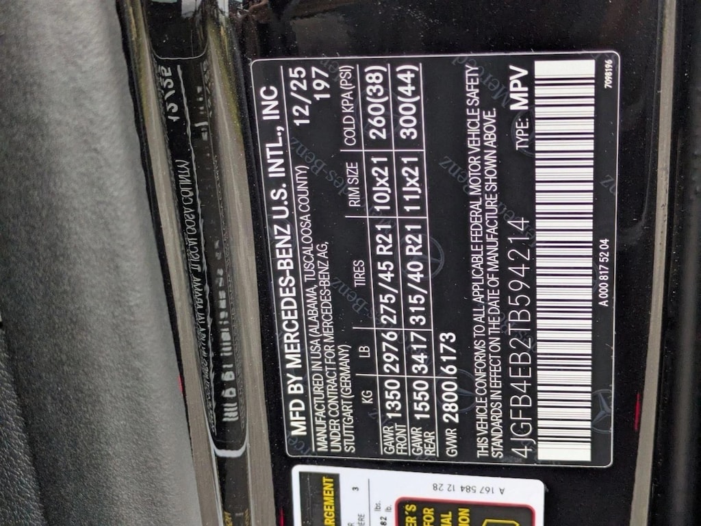 • Tires: 275/45R21 Front and 315/40R21 Rear