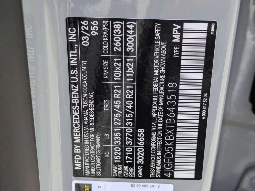 • Tires: 275/45R21 Front and 315/40R21 Rear