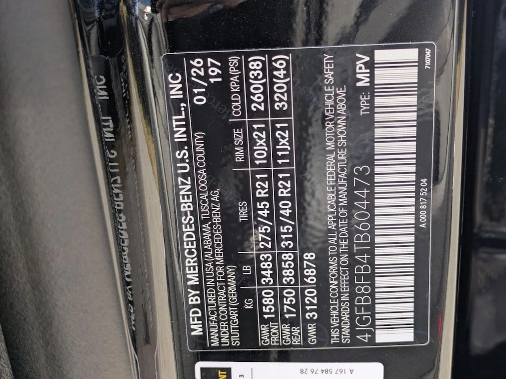 • Tires: 275/45R21 Front and 315/40R21 Rear